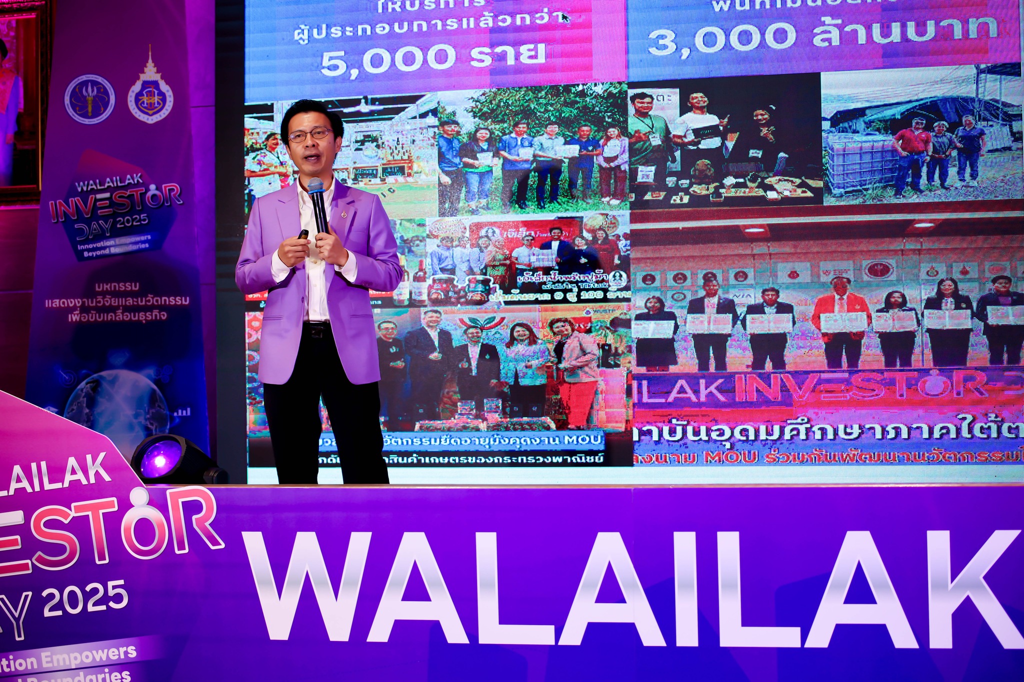 อุทยานวิทยาศาสตร์และเทคโนโลยี มหาวิทยาลัยวลัยลักษณ์ จัดงาน “WALAILAK INVESTOR DAY 2025” ภายใต้แนวคิด “Innovation Empowers Beyond Boundaries: พลังแห่งนวัตกรรมสู่การเติบโตอย่างไร้ขอบเขต” โดยมีผู้บริหารจากภาครัฐ ภาคเอกชน นักวิจัย ผู้ประกอบการ และนักศึกษาเข้าร่วมอย่างคับคั่งกล่าวเปิดงาน: ตอกย้ำบทบาทนวัตกรรมสู่การพัฒนาเศรษฐกิจ
