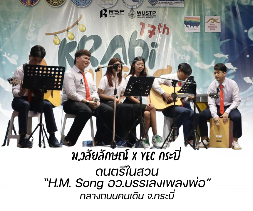 เมื่อวันที่ 5 ธันวาคม 2568 อุทยานวิทยาศาสตร์และเทคโนโลยี มหาวิทยาลัยวลัยลักษณ์ ในฐานะสถาบันอุดมศึกษาในกำกับของ กระทรวงการอุดมศึกษา วิทยาศาสตร์ วิจัยและนวัตกรรม (อว.) ส่วนหน้าจังหวัดกระบี่ ร่วมกับ กลุ่มนักธุรกิจรุ่นใหม่หอการค้าจังหวัดกระบี่ (YEC Krabi) จัดกิจกรรมดนตรีเทิดพระเกียรติประจำปี 2568 ภายใต้ชื่องาน “ดนตรีในสวน: H.M. Song อว.บรรเลงเพลงพ่อ” ณ ถนนคนเดิน อำเภอเมืองกระบี่ จังหวัด กระบี่