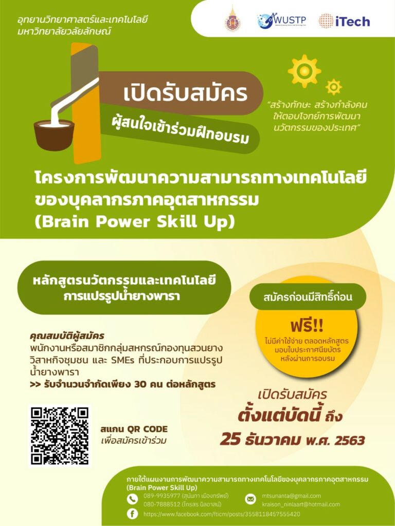 หลักสูตรนวัตกรรมและเทคโนโลยีการแปรรูปน้ำยางพารา