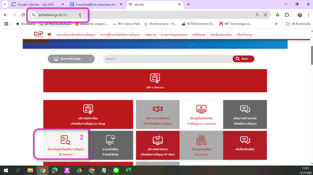 ท่านสามารถค้นหาข้อมูลทรัพย์สินทางปัญญาที่ได้ยื่นขอรับความคุ้มครองไปแล้วในประเทศไทยตั้งแต่อดีตจนถึงปัจจุบัน โดยเข้าไปที่ เว็บไซต์ของกรมทรัพย์สินทางปัญญา โดยระบบดังกล่าวมีการปรับปรุงข้อมูลสิทธิบัตรให้เป็นปัจจุบัน โดยสามารถทำได้ง่ายๆ ตามขั้นตอน ดังนี้
